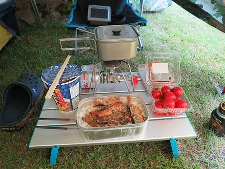 メスティンで炊いたホカホカのご飯にサンマのかば焼きは絶品。