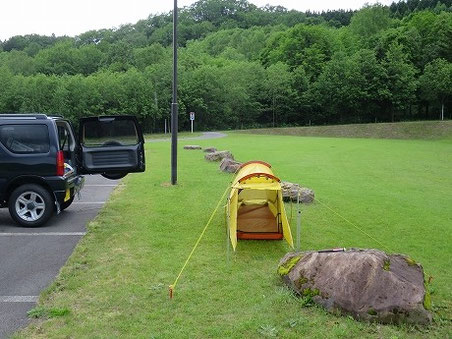 駐車場の後方にテントを張れます。サイトは段々になっており、とても綺麗に整備されています。私の他にキャンパーは僅か1組だけで、ゆったり気分です。