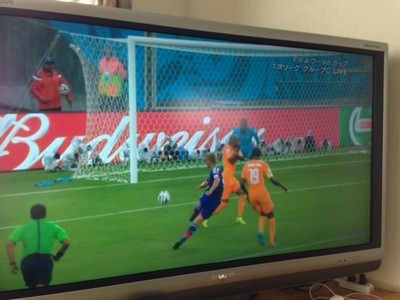 本田が先制点を入れた時は(上画像)、行けるぜ!!と喜びましたが、その後は防戦一方となり、逆転負けでした。残念。グループC突破が厳しくなりましたが、ギリシャ・コロンビア戦では日本ならではのチームプレーを見せて欲しい。。
