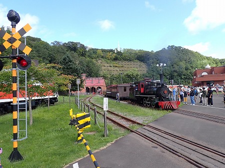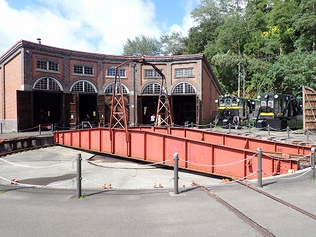後方のレンガ倉庫には蒸気機関車が格納されています。