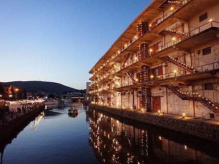 黄昏の運河と提灯が北海道の晩夏にピッタリです。