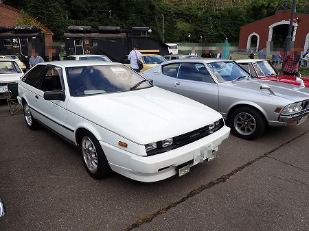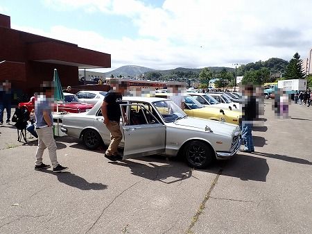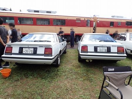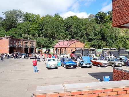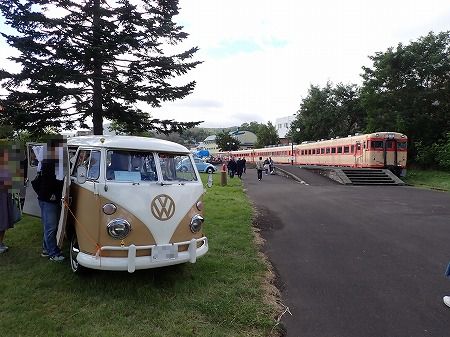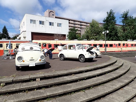 クラシックカーの会場です。国鉄時代の鉄道車両があって、