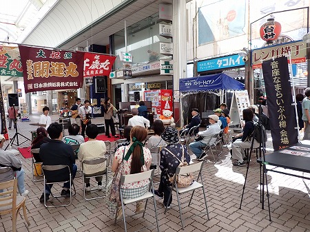 サンモール一番街ではマチライブが行われていました。これは夜まで様々なバンドが延々演奏するイベントです。
