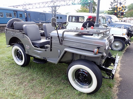 ウイリスジープとは珍しい。その奥の白い三菱ジープの源流になったジープです。