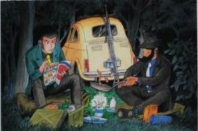 「カリオストロの城」でチンクに野営道具を積んで・・というシーンに影響を受けた私は、後年ロードスターにキャンプ道具を積んで走ったのであった。。