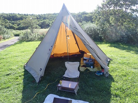 そういえば二度寝してすぐに外を歩くキツネの姿が外灯に照らされ、テントの幕に影絵のように映りました。怖かった・・。