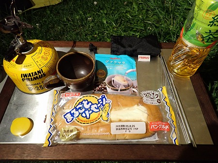 AM5時起床。清々しい朝です。夜間はずっと20℃の気温でパンツ一丁でシュラフに入り睡眠しました。